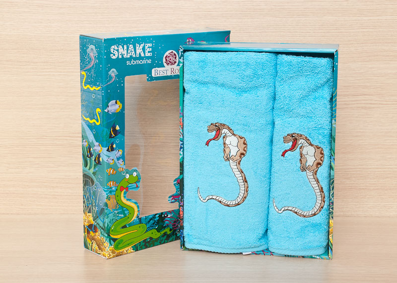 Набор махровых полотенец Best Rose "Змея" 50х90-90х140, Бирюзовый