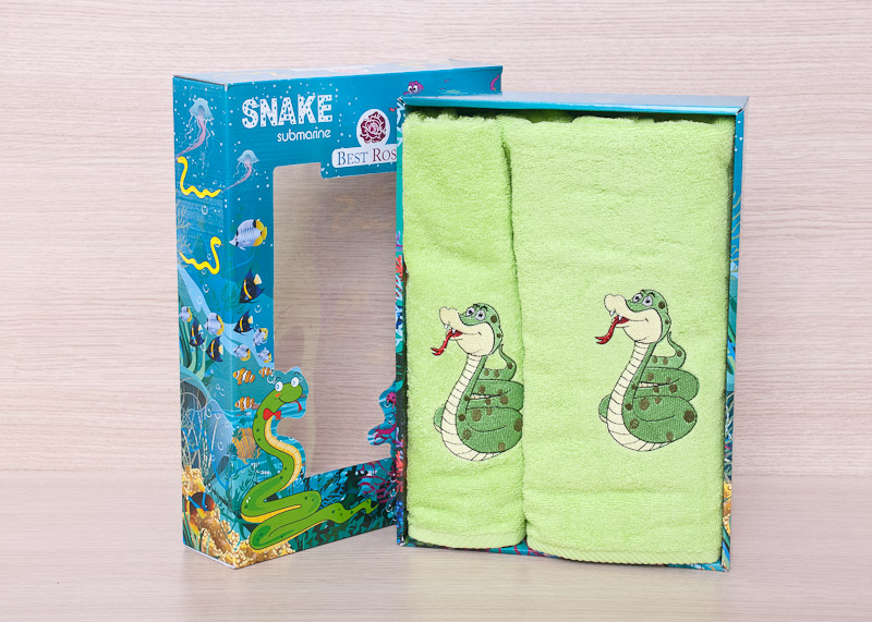 Набор махровых полотенец Best Rose "Змея" 50х90-90х140, Зелёный