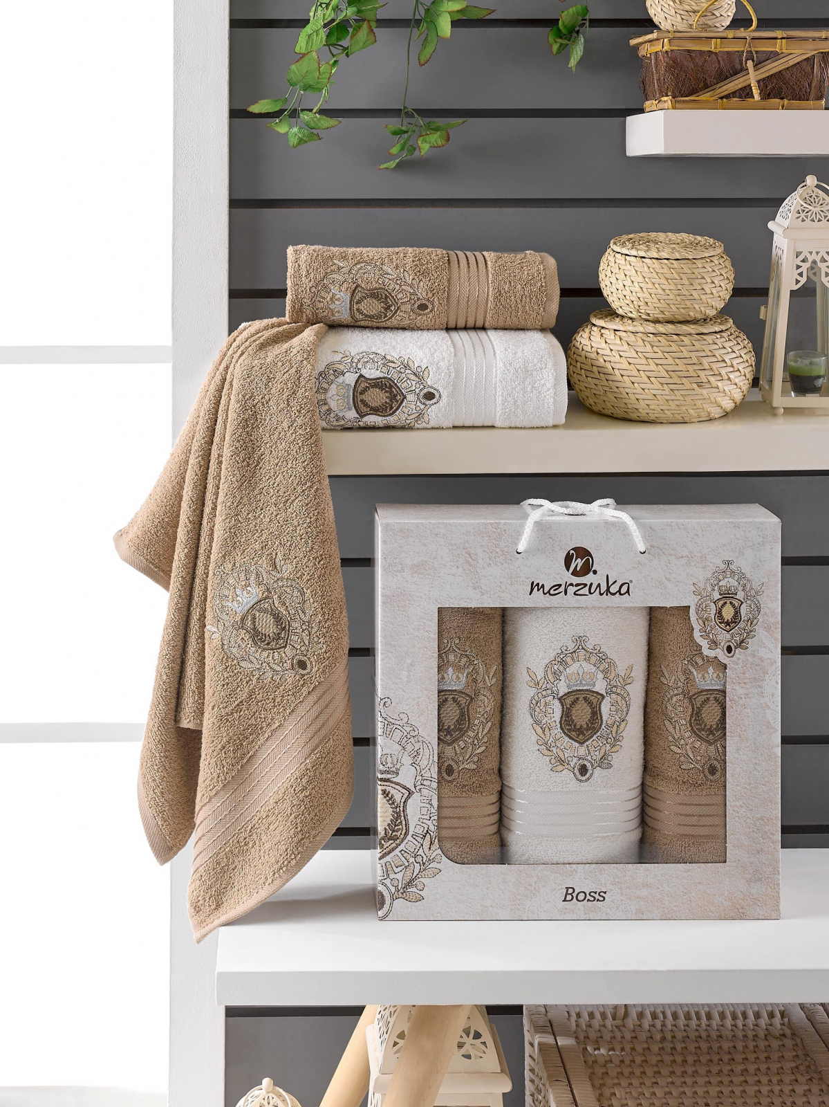 Комплект махровых полотенец "MERZUKA" (50x80/2)(70х130/1) 3 шт. BOSS (коричневый)
