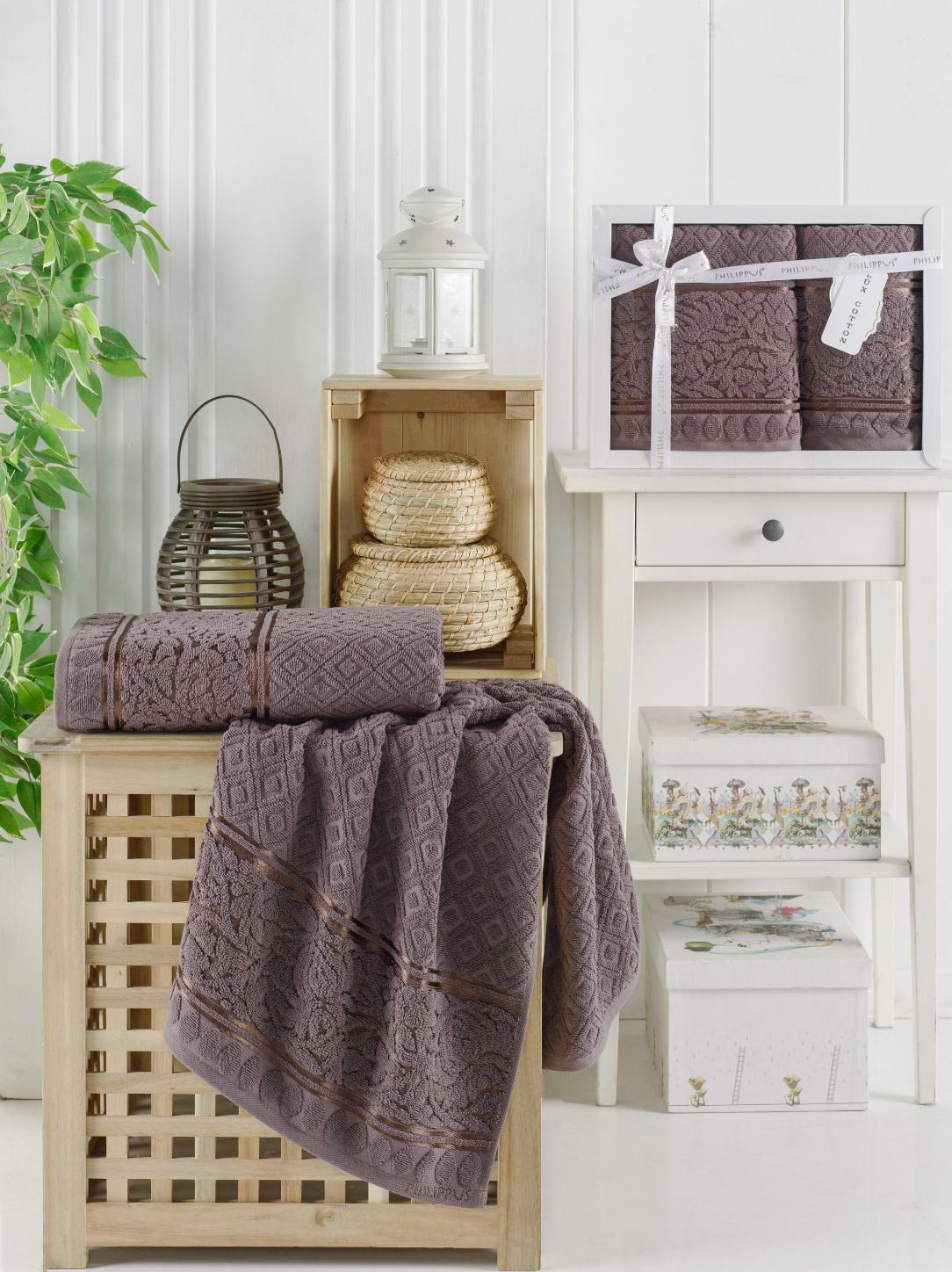 Комплект махровых полотенец "PHILIPPUS" жаккард 50x90/70х140) 2 шт.E927 MOTTYA, коричневый