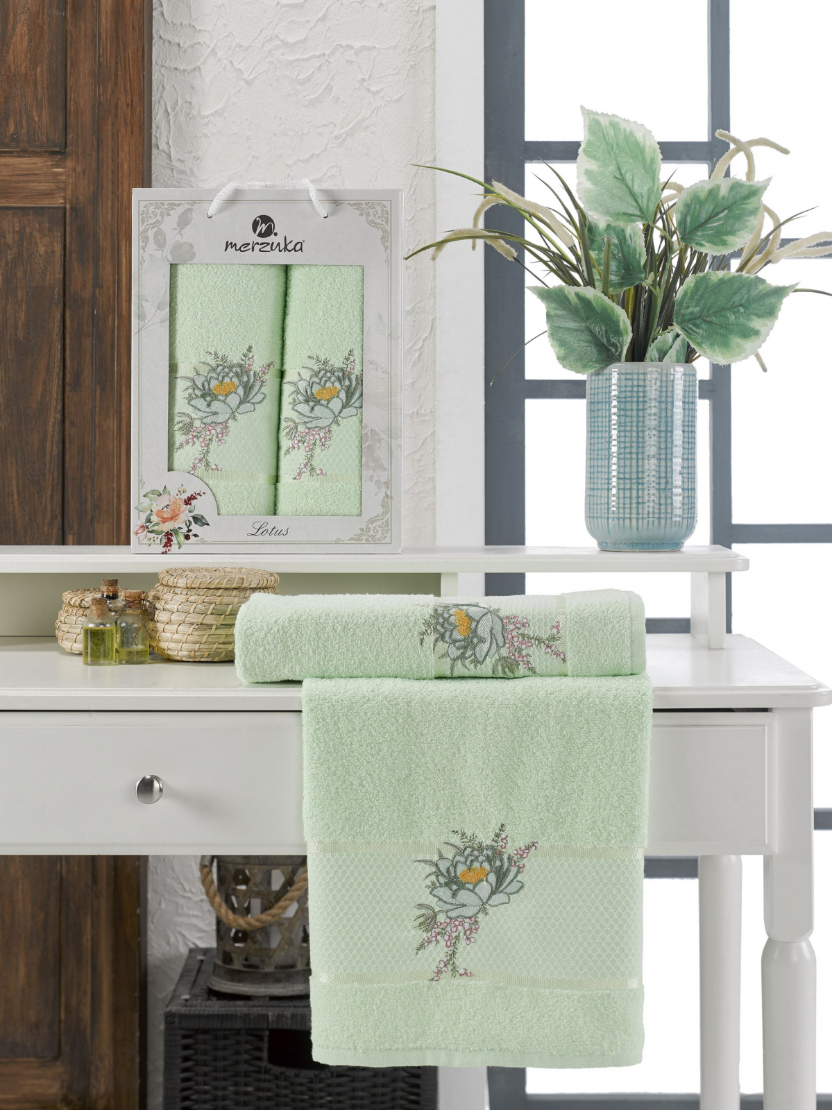 Комплект махровых полотенец "MERZUKA" (50x90/1)(70х140/1) 2 шт. LOTUS, фисташковый