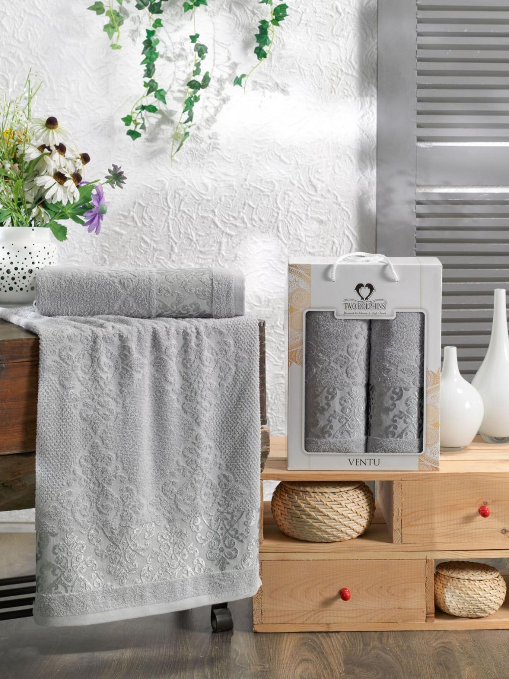 Комплект махровых полотенец "TWO DOLPHINS" (50x90/70х140) 2 шт. VENTU, светло-серый