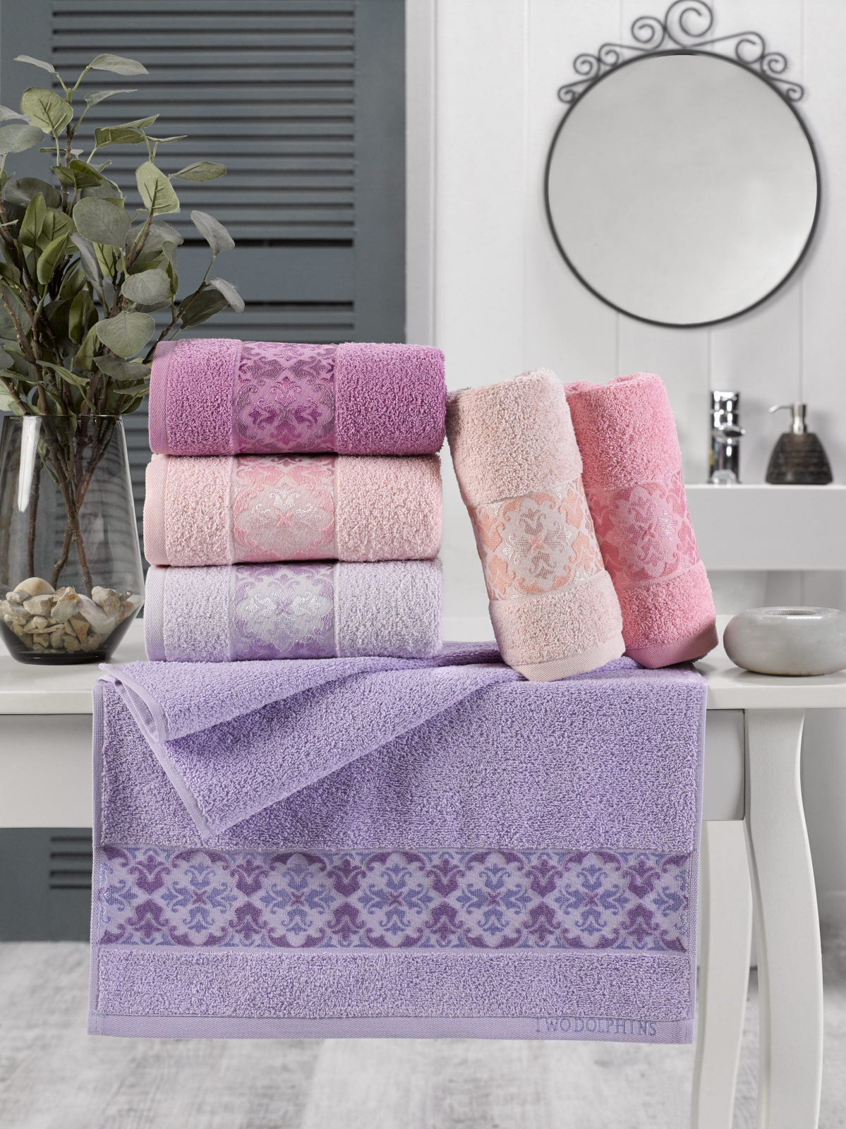 Набор махровых полотенец "TWO DOLPHINS" жаккард 70х140 (1/6 ) A096) ŞELEMZAR
