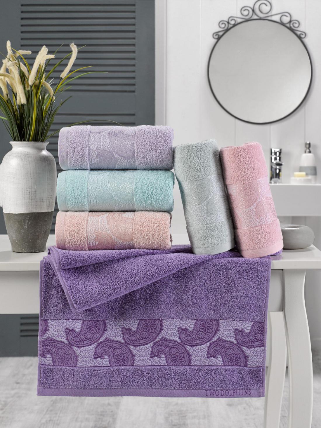 Набор махровых полотенец "TWO DOLPHINS" жаккард 50х90 (1/6 ) A113) ASPENDOS