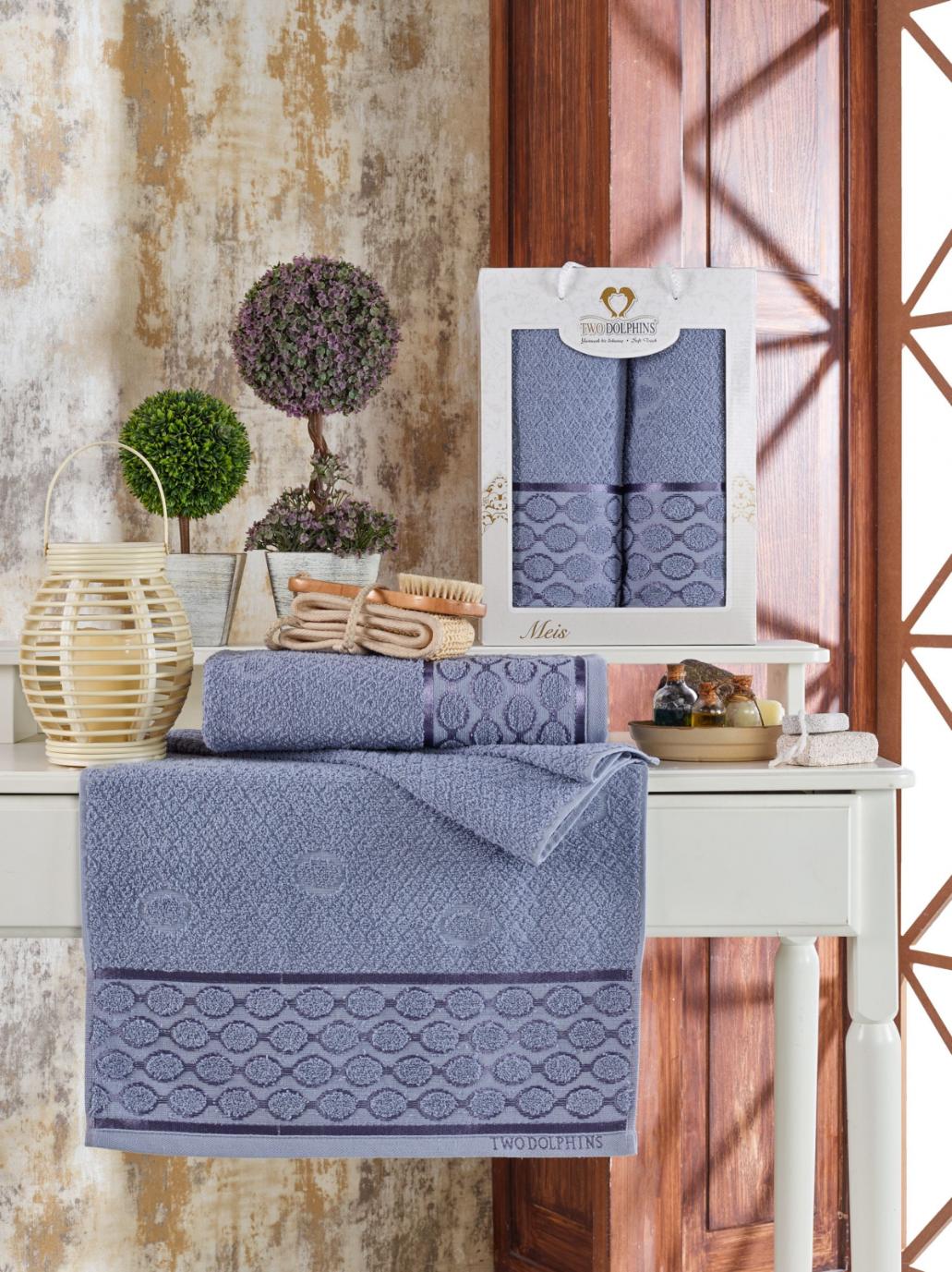 Комплект махровых полотенец "TWO DOLPHINS" (50x90/70х140) 2 шт. MEIS, голубой