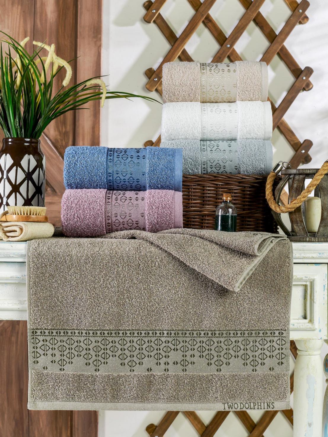 Набор махровых полотенец "TWO DOLPHINS" жаккард 70х140 (1/6 ) A182 KASMIR