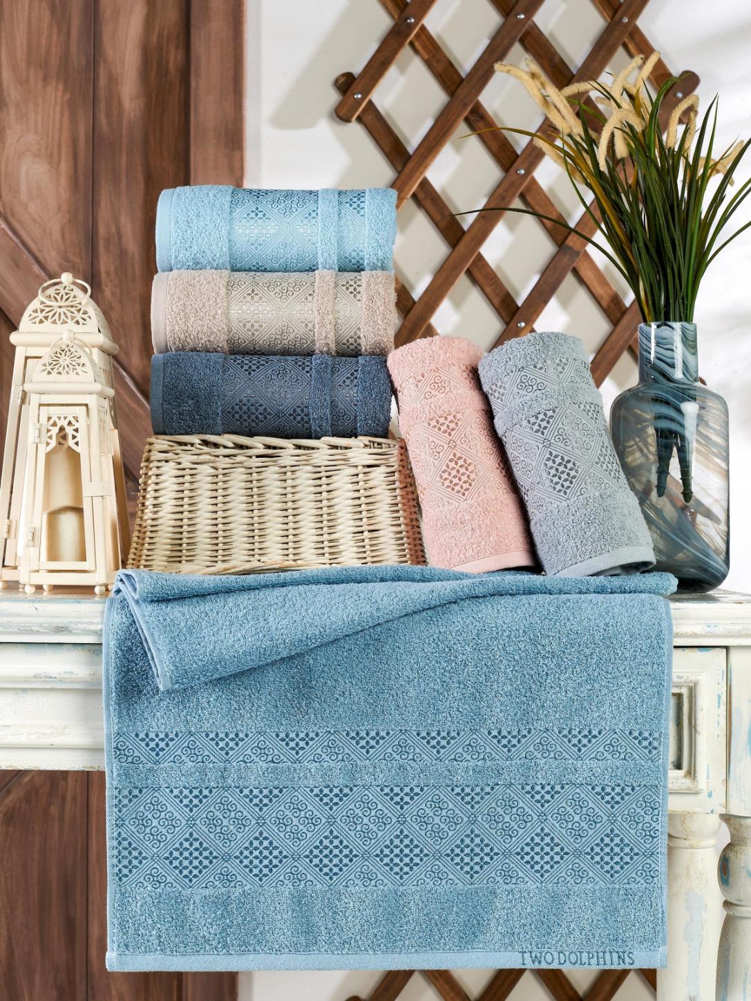 Набор махровых полотенец "TWO DOLPHINS" жаккард 70х140 (1/6 ) A183 DESTAN