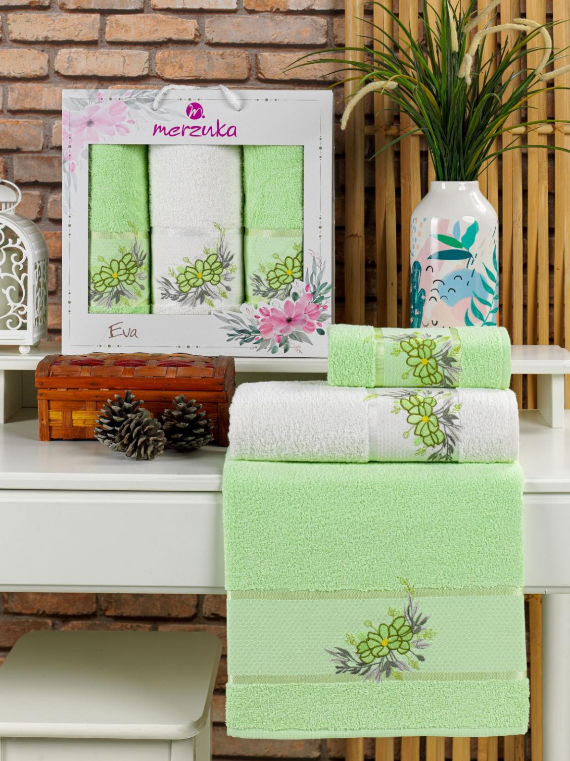 Комплект махровых полотенец "MERZUKA" (50x90/2)(70х140/1) 3 шт. EVA, фисташковый