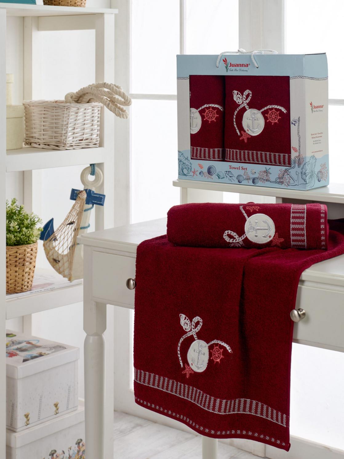 Комплект махровых полотенец "MERZUKA" (50x90/1)(70х140/1) 2 шт. JUANNA, бордовый