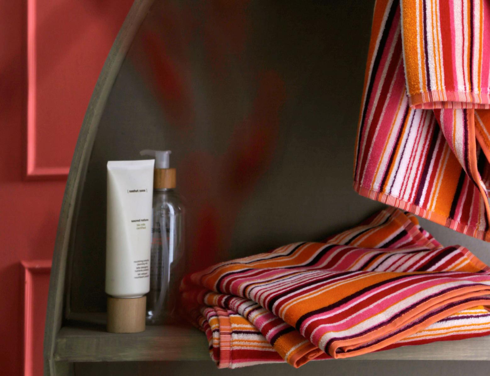 Двустороннее полотенце серии выполнен "STRATTA" двусторонней ткани на хлопковой основе, что обеспечивает изделию оптимальный уровень экологичности, гигроскопичности и воздухопроницаемости.