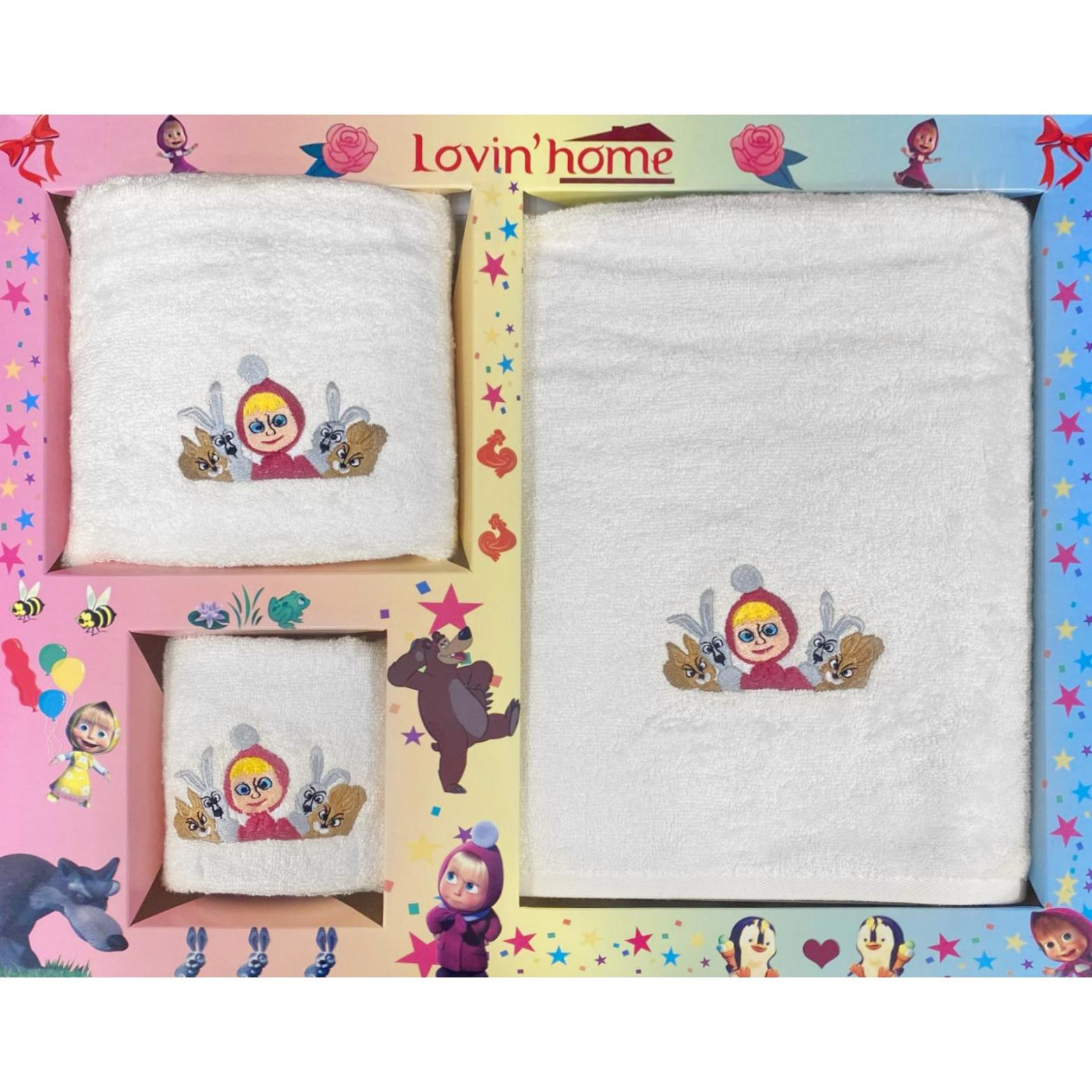 Набор бамбуковых полотенец "LOVIN HOME" Маша и медведь 3шт.(30*50, 50*90, 70*140), белка+заяц