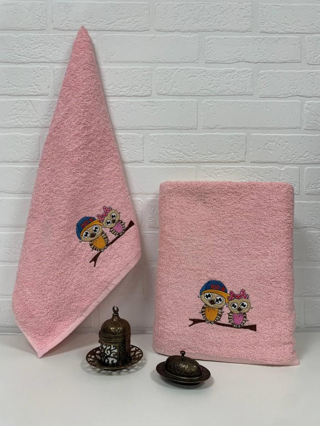 Набор махровых полотенец "СОВА" ( 50х90+70х140), темно-розовый