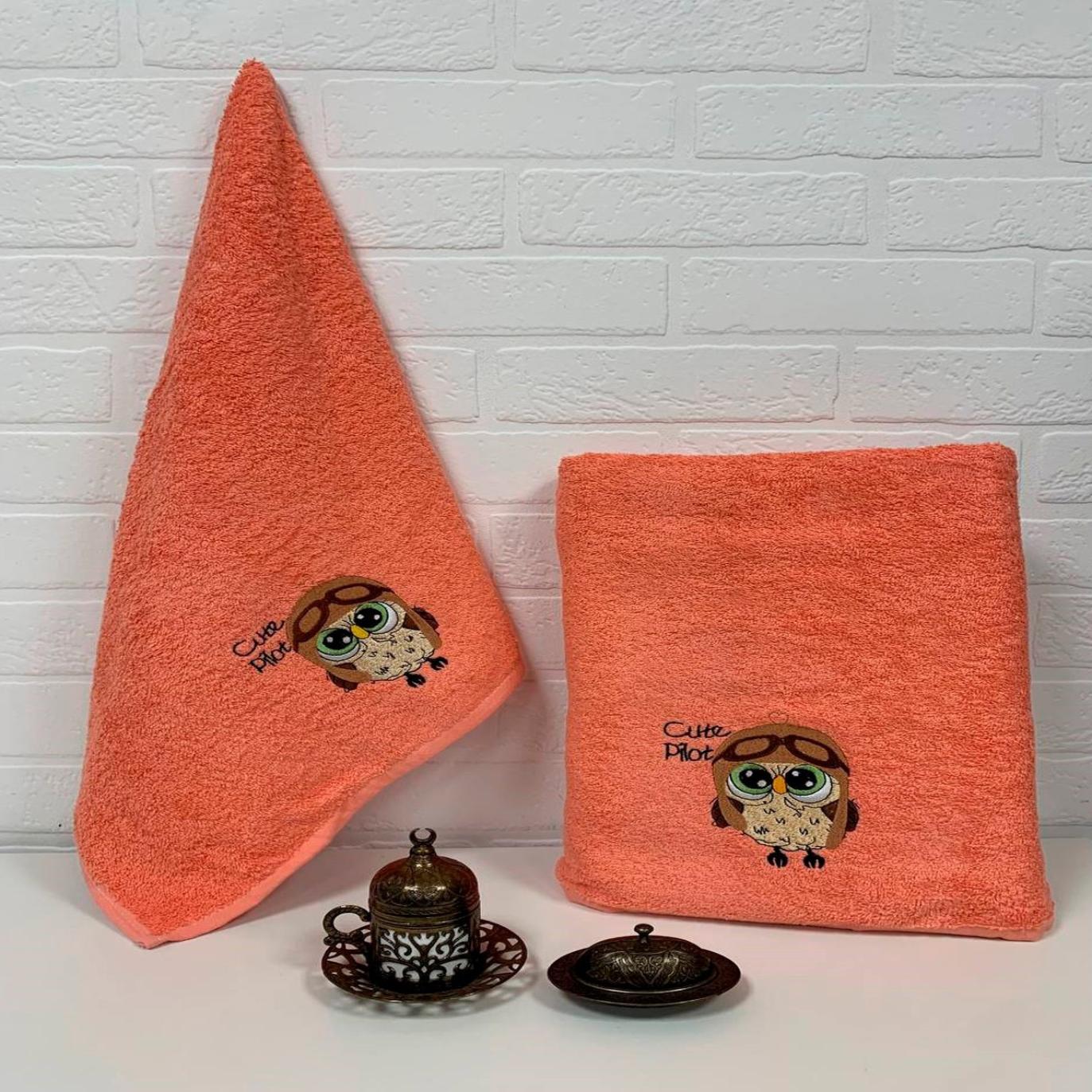Набор махровых полотенец "СОВА" ( 50х90+70х140), оранжевый