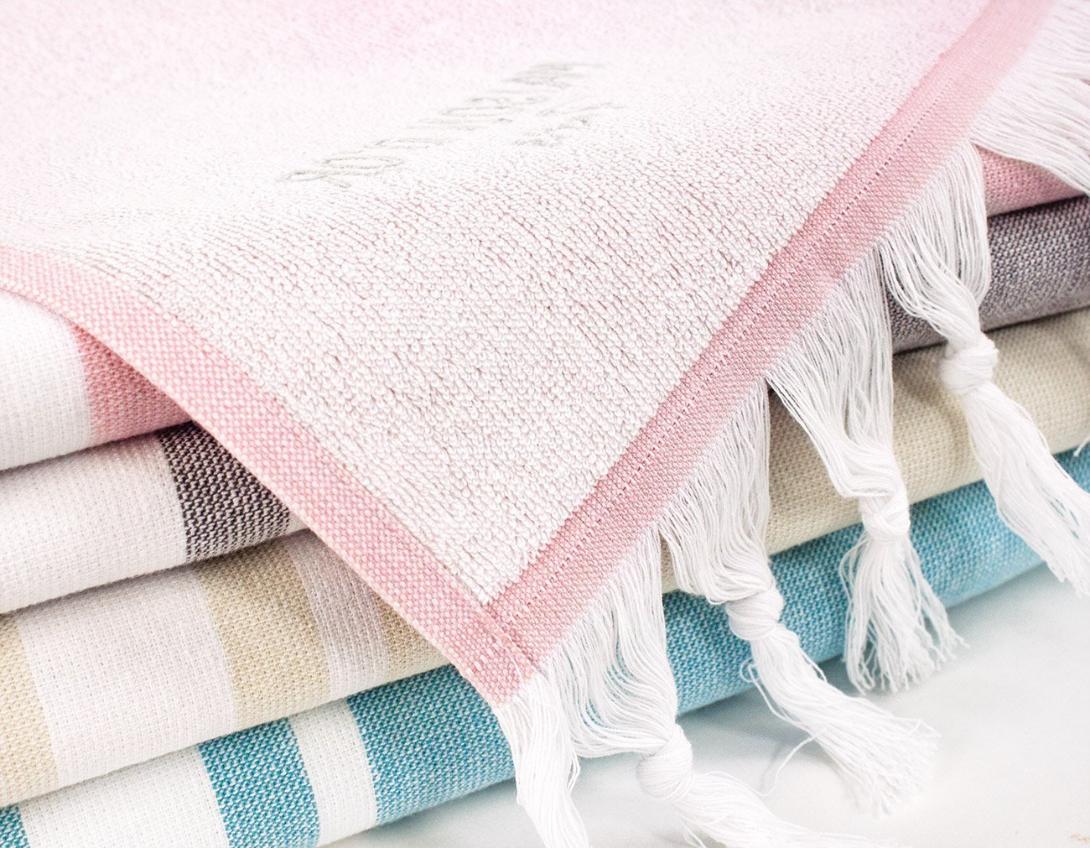 Традиционные турецкие полотенца для хамама, сауны и бани выполнены из 100% хлопка. Наружная сторона - тканое полотно, внутренняя - махровая ткань. Коллекция выполнена в тёплых, пастельных тонах. С двух сторон полотенца декорированы бахромой (кистями).