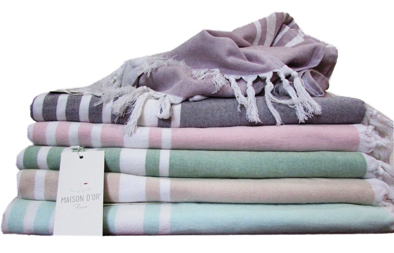 Традиционные турецкие полотенца для хамама, сауны и бани выполнены из 100% хлопка. Наружная сторона - тканое полотно, внутренняя - махровая ткань. Коллекция выполнена в тёплых, пастельных тонах. С двух сторон полотенца декорированы бахромой (кистями).