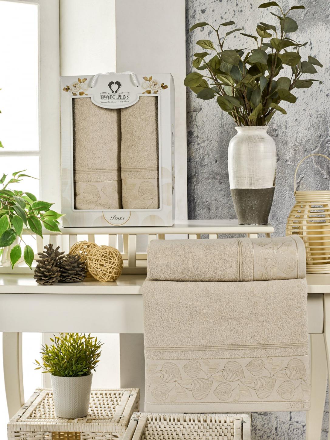 Комплект махровых полотенец "TWO DOLPHINS" (50x90/70х140) 2 шт. PENZA, бежевый