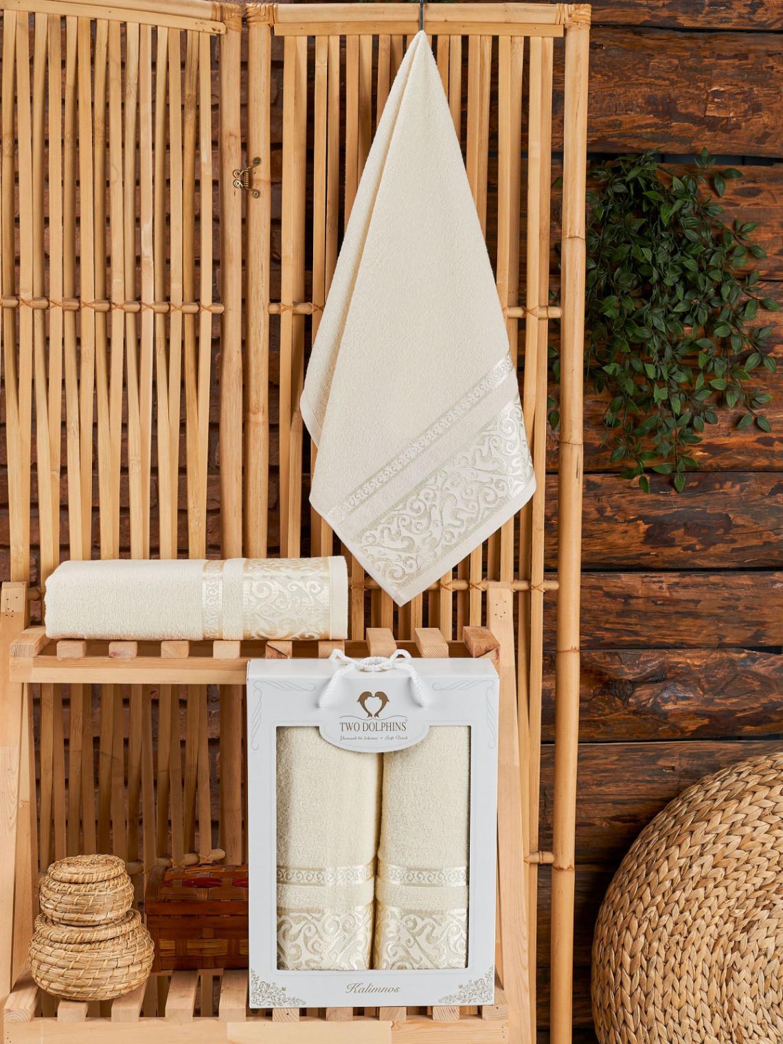 Комплект махровых полотенец "TWO DOLPHINS" (50x90/70х140) 2 шт. KALIMNOS, кремовый