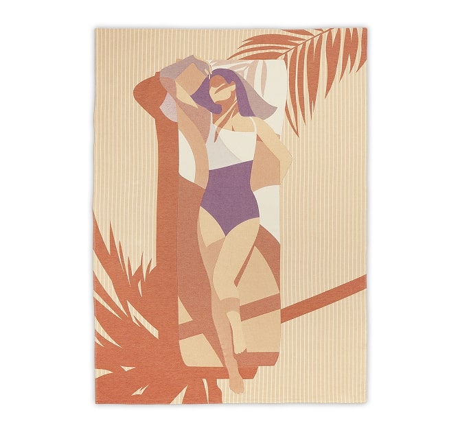 Пляжное полотенце Sunbather из жаккардовой ткани (100% хлопок) создано в сотрудничестве с английским художником Чарли Дэвисом и выпущено ограниченным тиражом в 500 экземпляров.