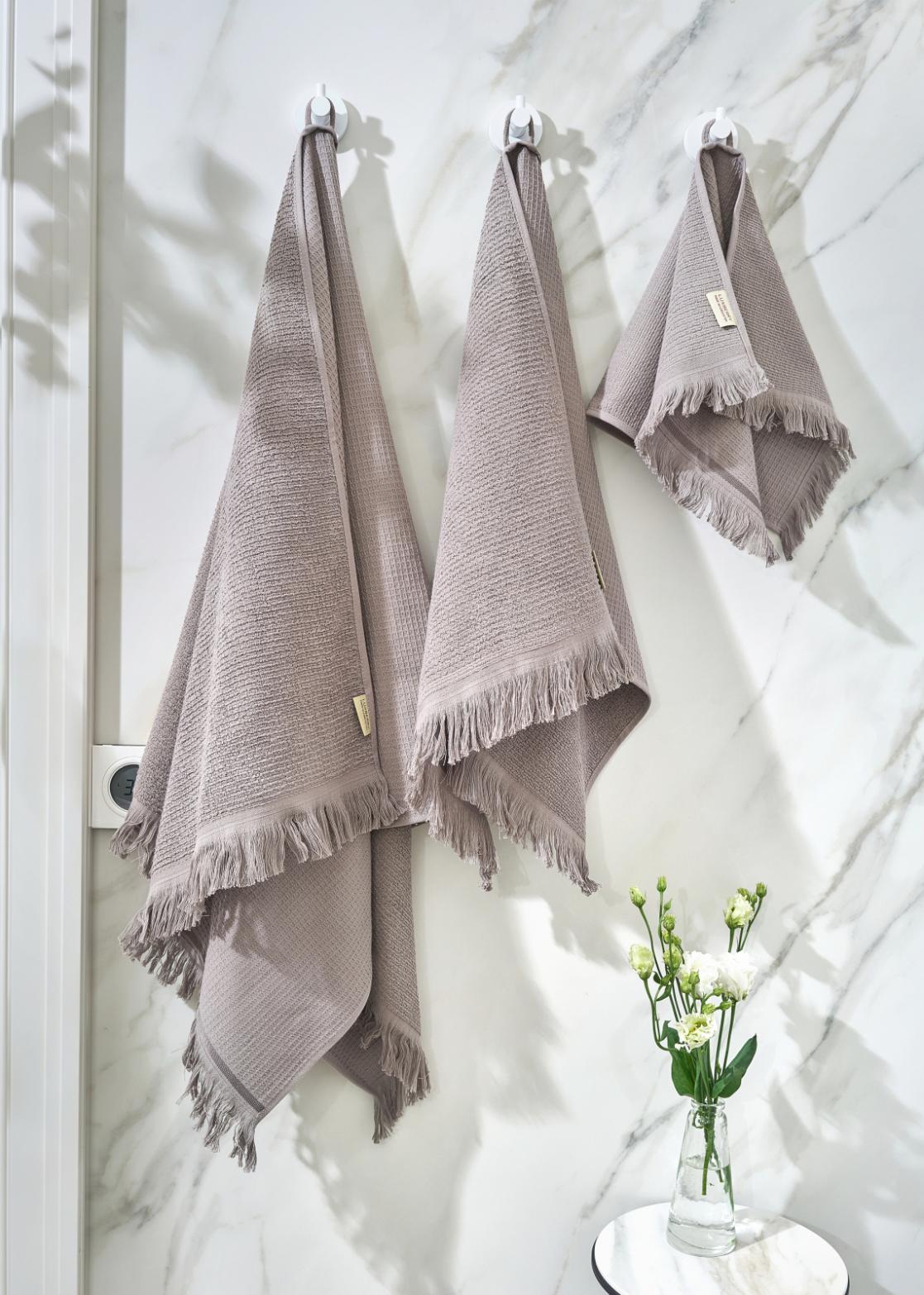 Двусторонние полотенца серии "IRIS" торговой марки "luxberry" выполнены из 100% узбекского хлопка. Наружная сторона - вафельное полотно, внутренняя - махровая ткань с короткой петелькой. С короткой стороны полотенца декорированы бахромой (кистями). Коллекция представлена в четырех цветах: шоколадный, мокко, экрю и зеленый.