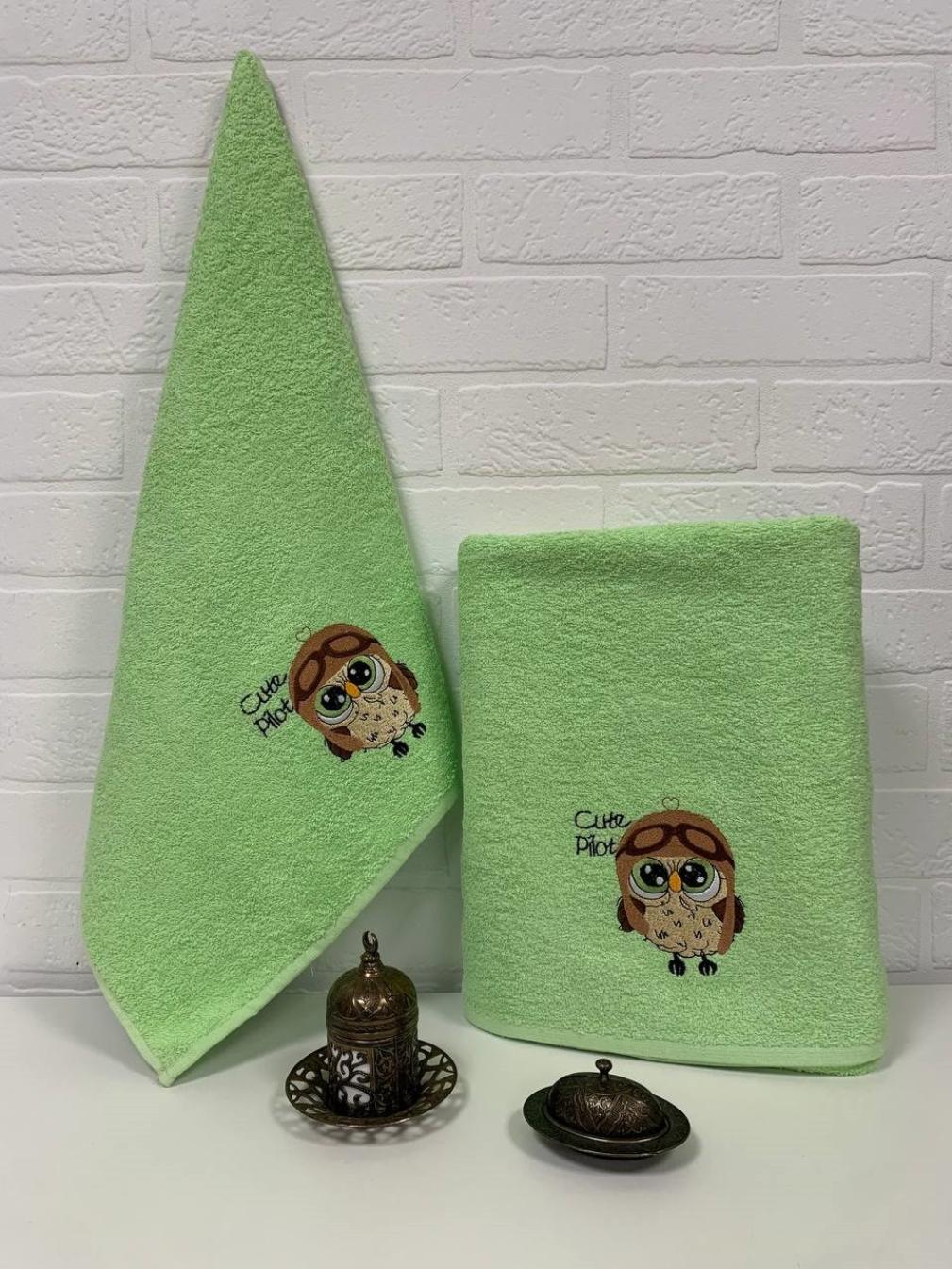 Набор махровых полотенец "СОВА" ( 50х90+70х140), салатовый