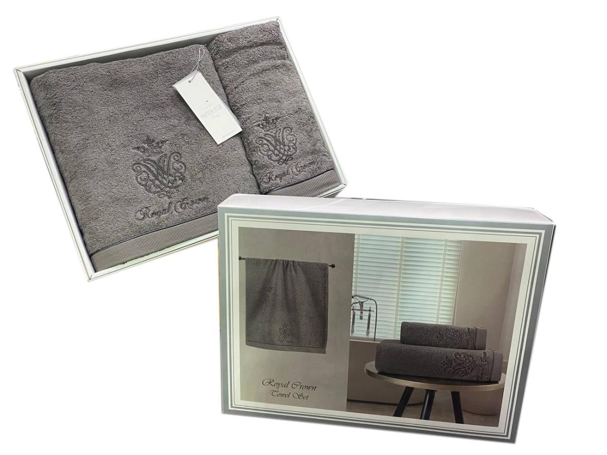 Комплект махровых полотенец 30x50-50x100-85x150 Maison D'or "ROYAL", антрацит