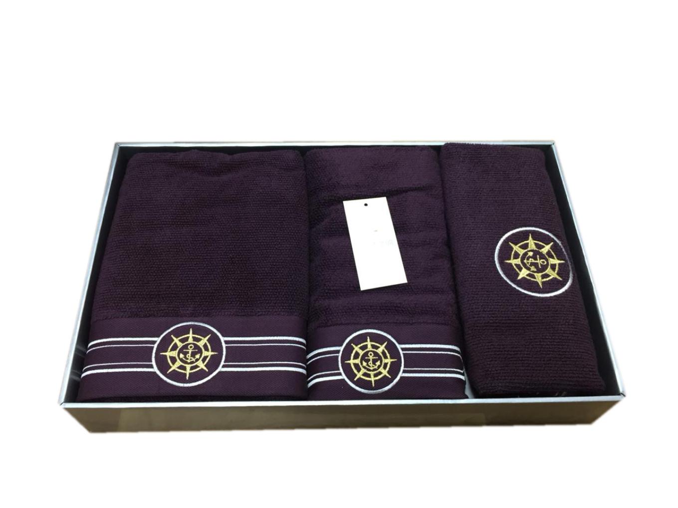 Комплект полотенец 50x100-85x150 с ковриком 50х80 Maison D'or "ELEGANZE" баклажан