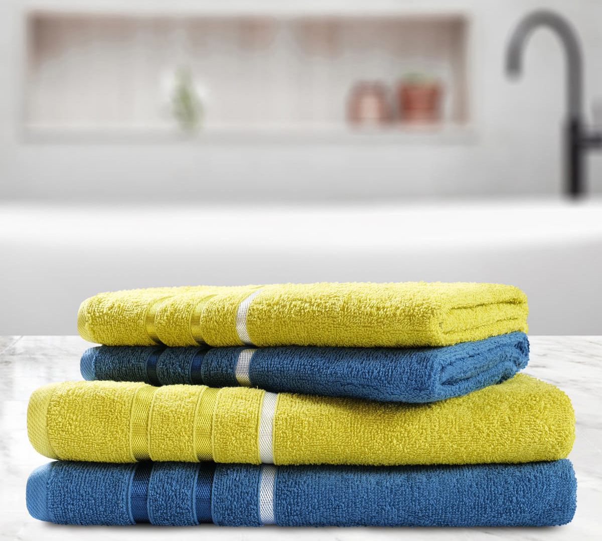 Набор полотенец AKAY "GRACY" 4 шт. (50*80-2, 70*130-2), олива-синий