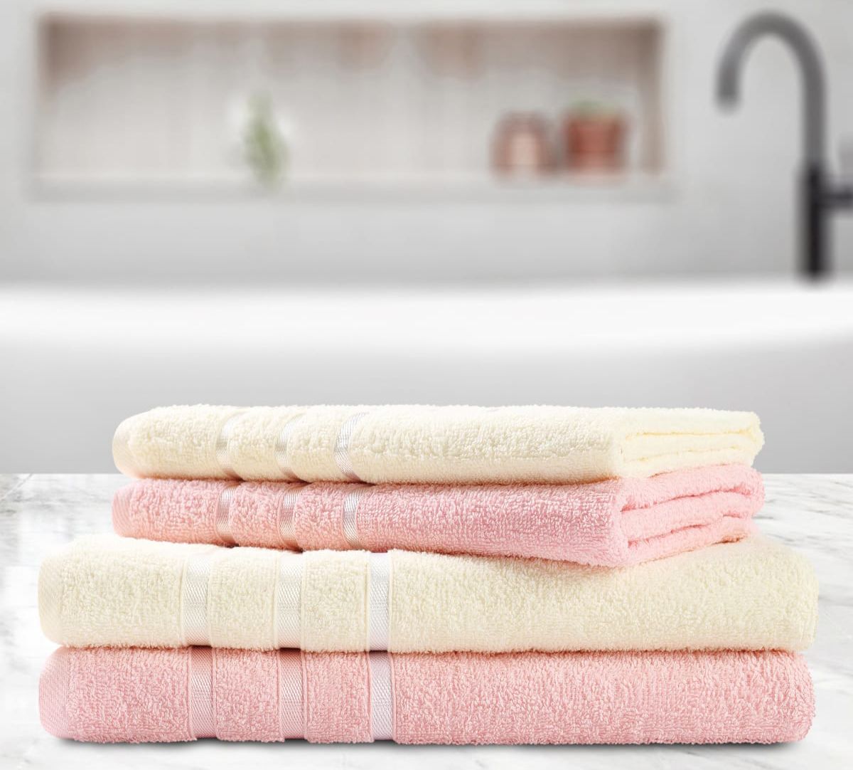 Набор полотенец AKAY "GRACY" 4 шт. (50*80-2, 70*130-2), розовый-кремовый