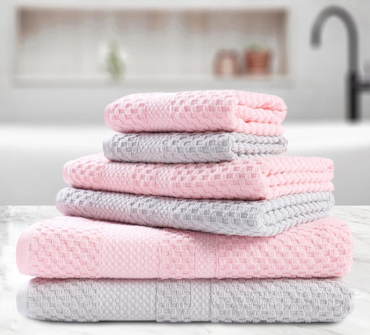Набор полотенец AKAY "LAMA" 6 шт. (33*50-2, 50*80-2, 70*130-2), розовый-светло серый