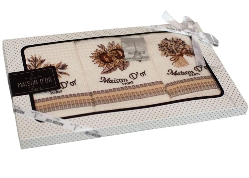 Комплект кухонных полотенец Maison D'or "STRIPES" 50х70-3шт, кремовый/кофейный
