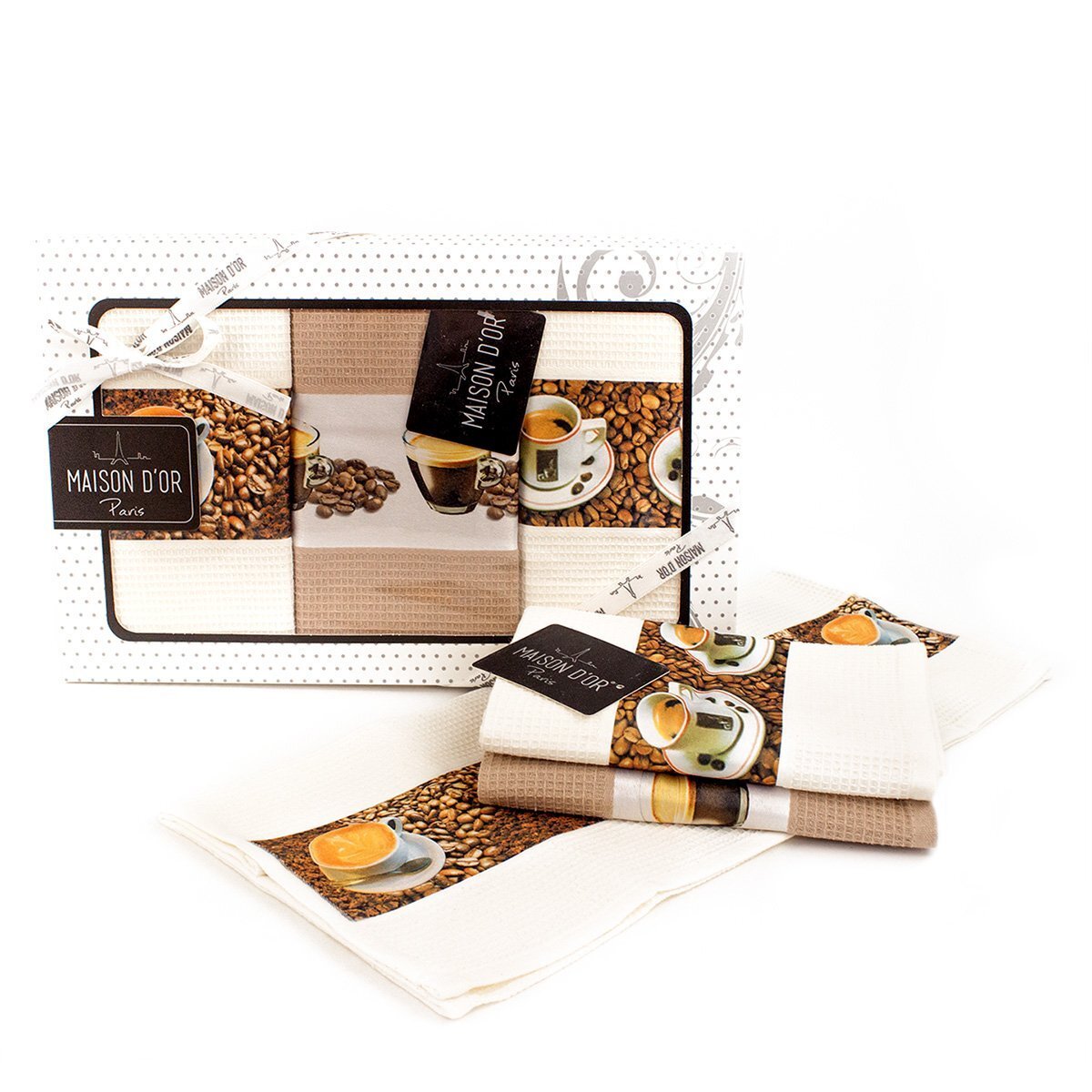 Комплект кухонных полотенец Maison D'or "COFFEE TIME" 45х70-3шт, кофе