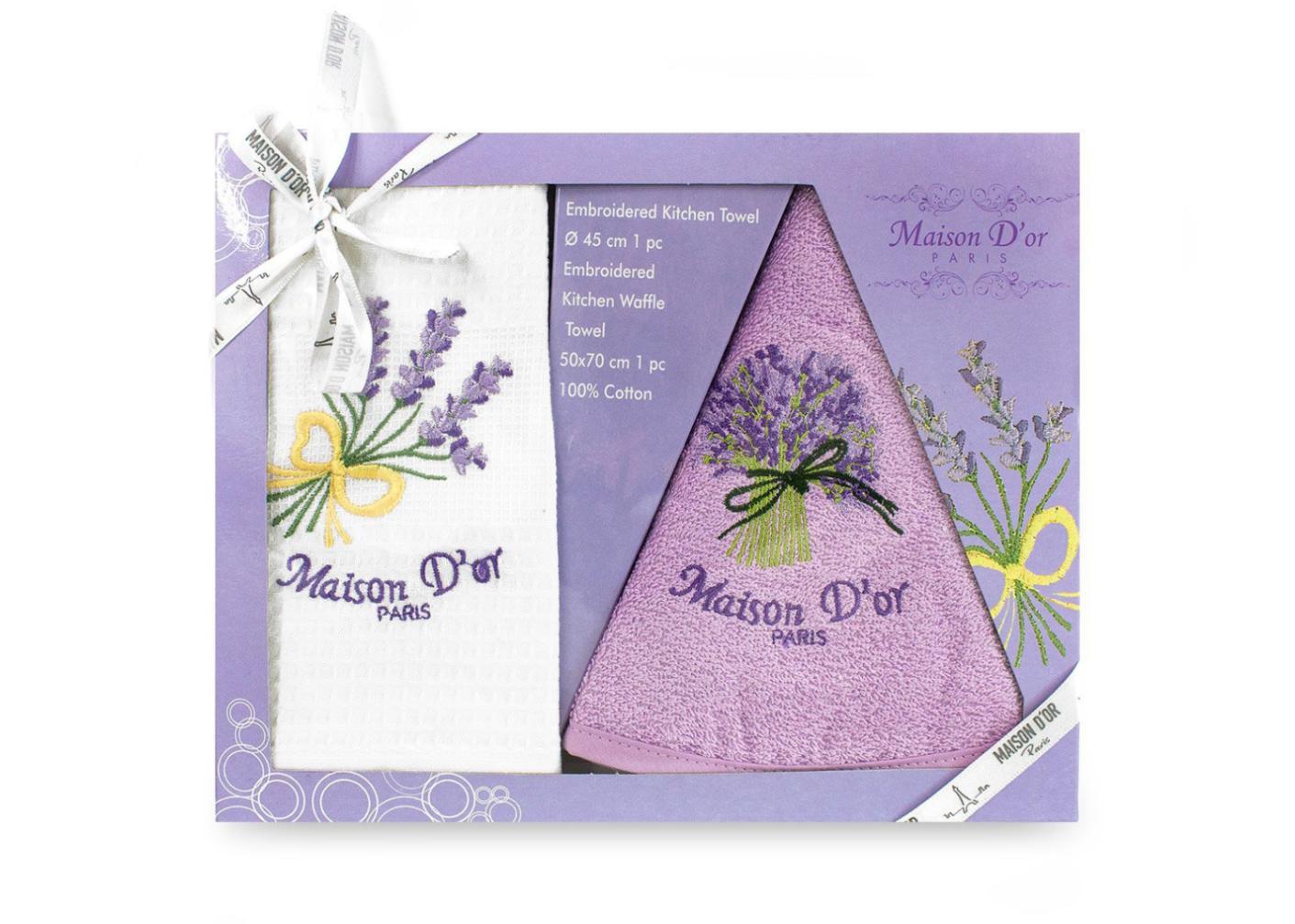 Комплект кухонных полотенец Maison D'or "LAVANDER 2" 45х45+50х70, белый/фиолетовый