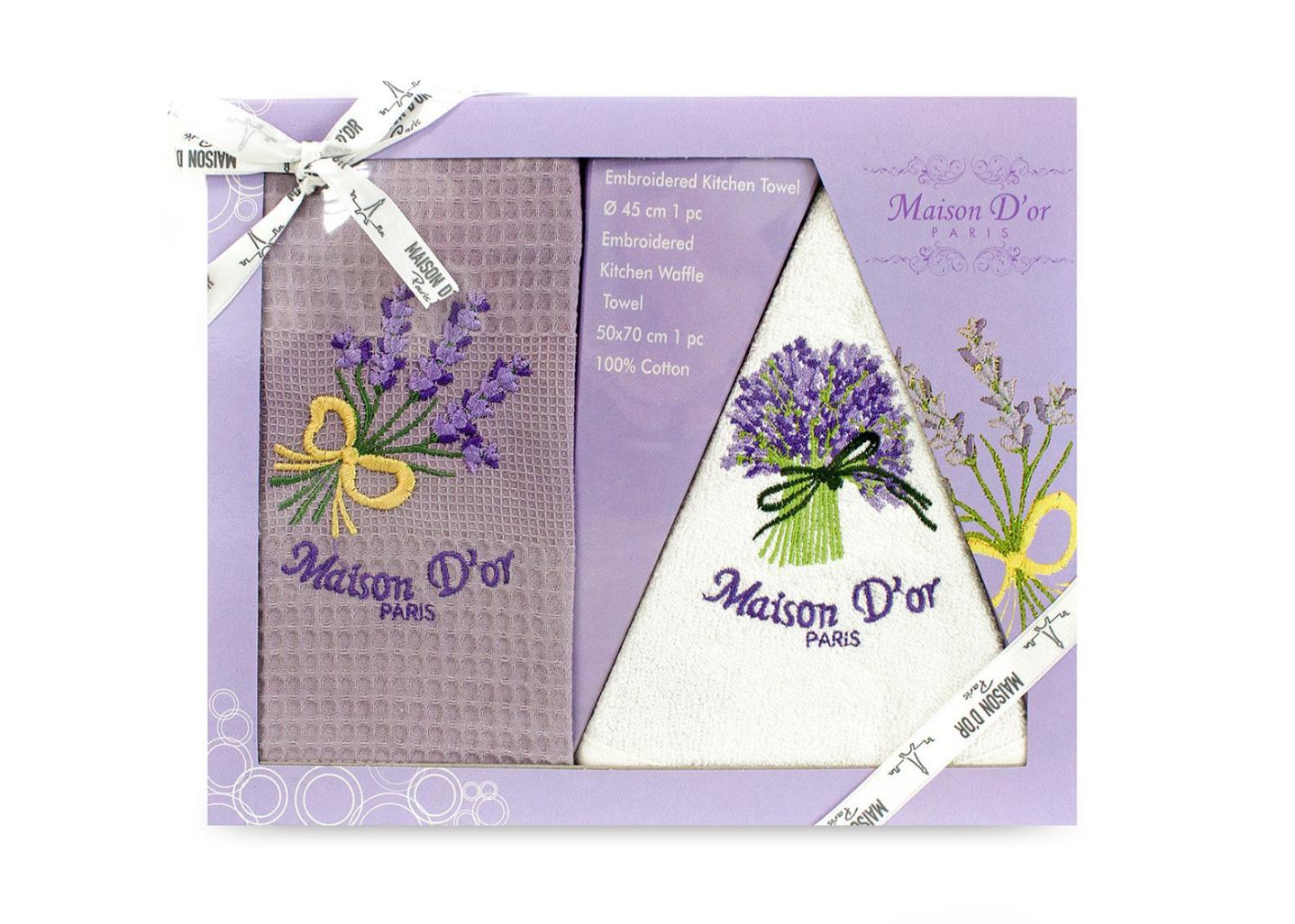 Комплект кухонных полотенец Maison D'or "LAVANDER 2" 45х45+50х70, фиолетовый/белый