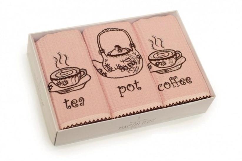 Комплект кухонных полотенец со стразами Maison D'or "WAFER TERRY" 40х70-3шт, пыльная роза