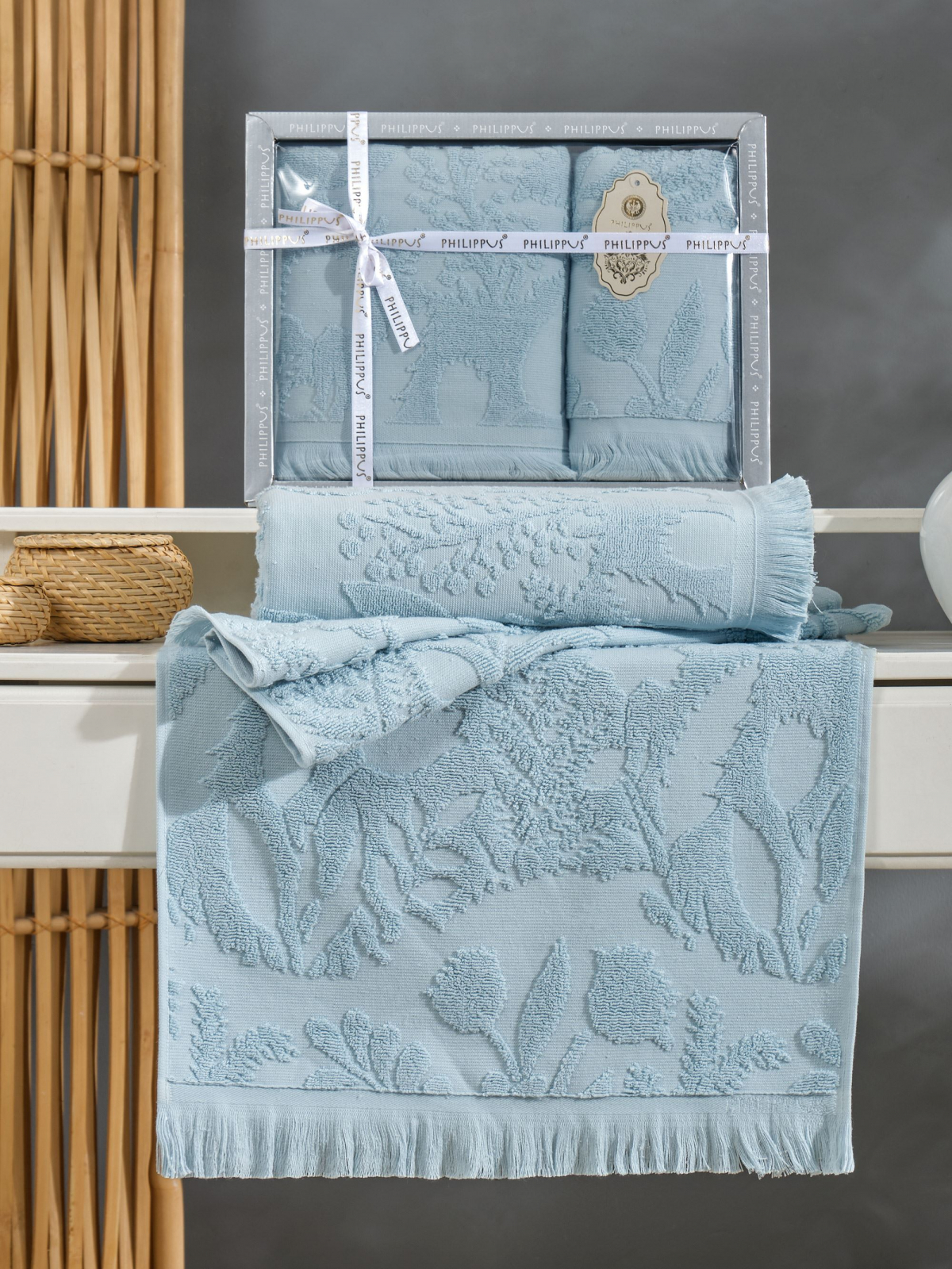 Комплект махровых полотенец с бахромой "PHILIPPUS" (50x90/70х140) 2 шт. BELEK, бирюзовый