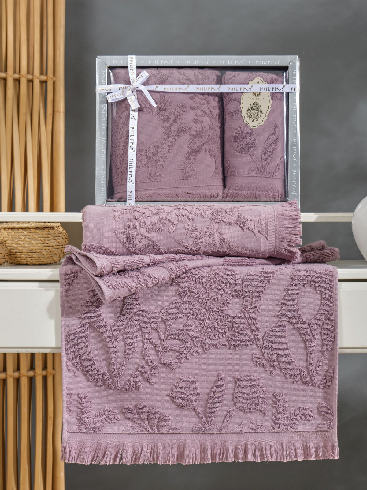 Комплект махровых полотенец с бахромой "PHILIPPUS" (50x90/70х140) 2 шт. BELEK, баклажан