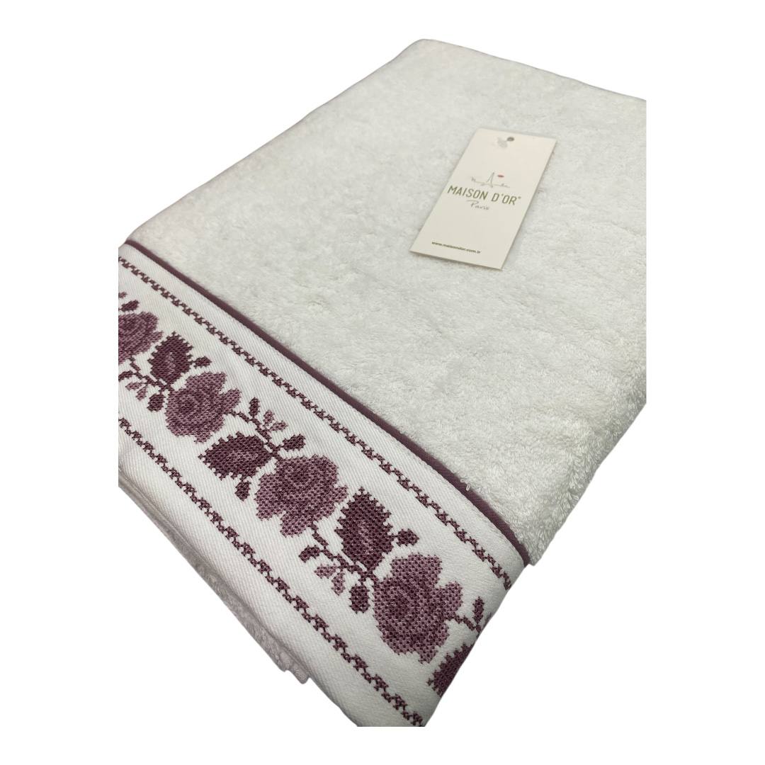 Полотенце махровое Maison D'or "ROSANNA" 50х100, белый/фиолетовый