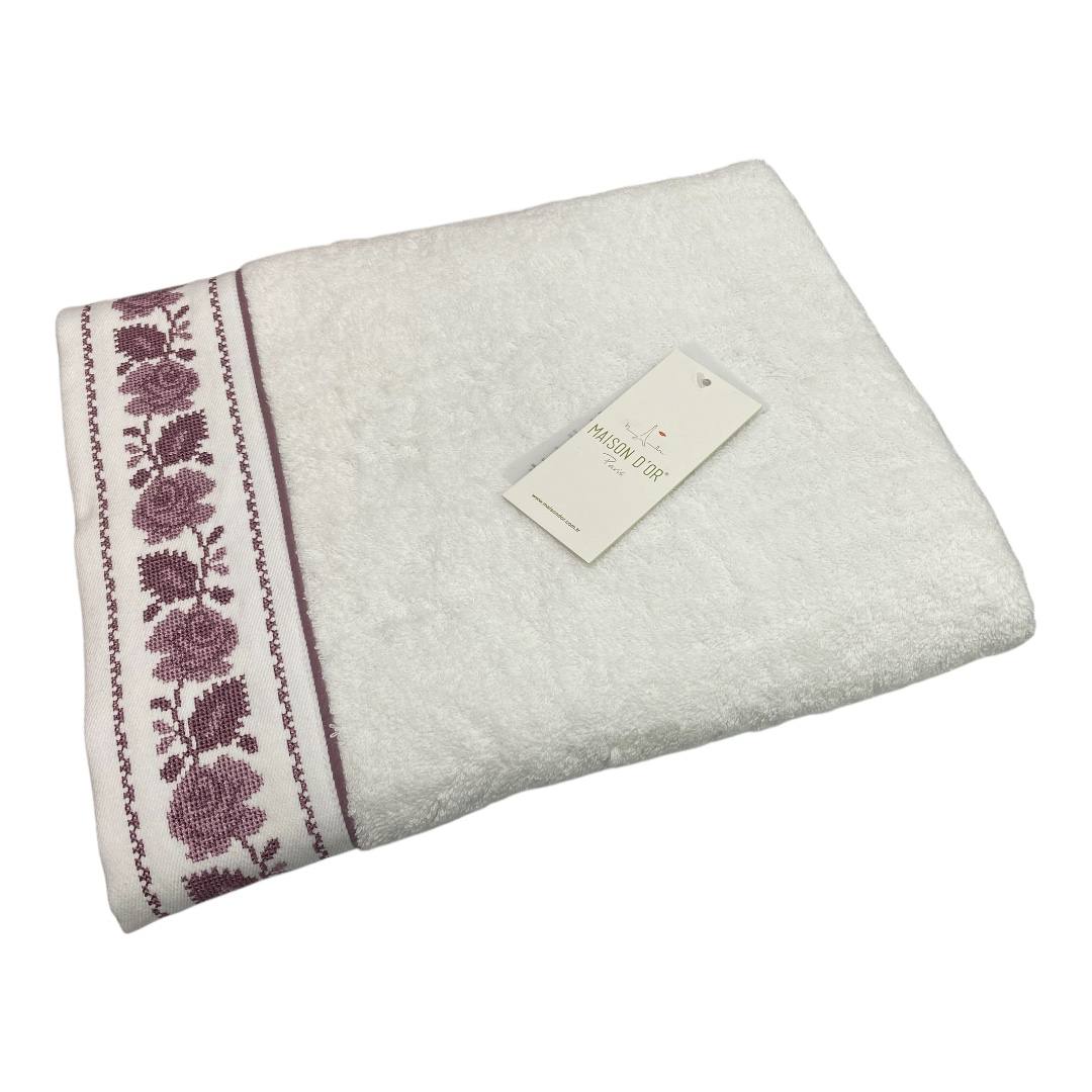 Полотенце махровое Maison D'or "ROSANNA" 85х150, белый/фиолетовый