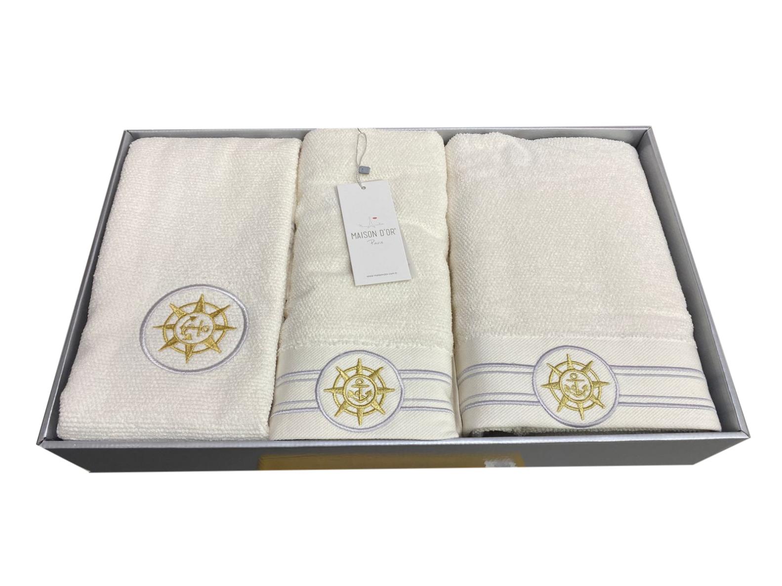 Комплект полотенец 50x100-85x150 с ковриком 50х80 Maison D'or "ELEGANCE" кремовый