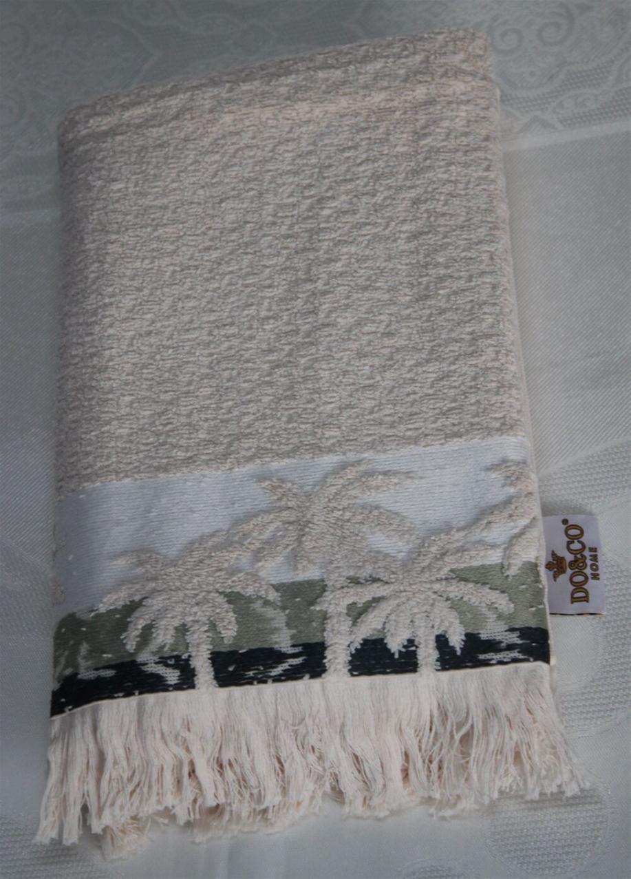 Полотенце махровое с бахромой "DO&CO" Жакард 70х140 (1/1 ) PALMIYE, кремовый