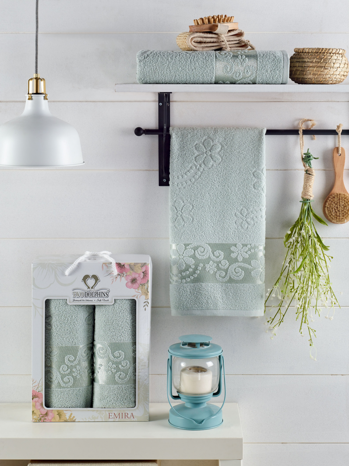 Комплект махровых полотенец "TWO DOLPHINS" (50x90/70х140) 2 шт. EMIRA, светло-зелёный